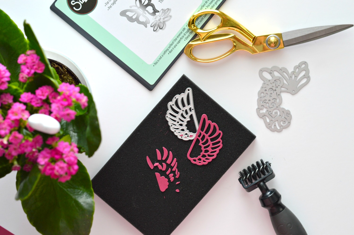 Today I will share some very useful tips and tricks! So the story starts with our favourtie Sizzix cutting machine and the most beautiful detailed thinlits die...and the result what is not even close to perfect. What is more it takes long minutes to remove excess paper from the dies. I guess you know what I mean, but I have a good news! There is a solution... or two. :-P The Precision Base Plate for Intricate Thinlits Dies and the Die Brush & Foam Pad from Sizzix.Precision Base Plate