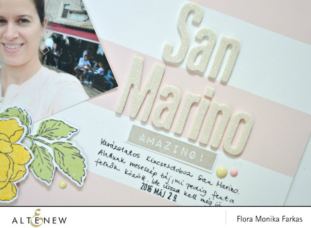 Sziasztok! Nagyon izgatott vagyok, hogy megmutathattam az első alkotásomat az Altenew blogon. Remélem tetszeni go. Nem is tudtam hirtelen mivel kezdjek, aztán úgy döntöttem, hogy saját kivágatokat fogok készíteni a virágos Beautiful Day és Label Love címke bélyegzőkkel. Egy héttel ezelőtt a barátnőmmel San Marinoban tettünk egy rövid látogatást és azt ott készült egyik selfienket dokumentáltam.